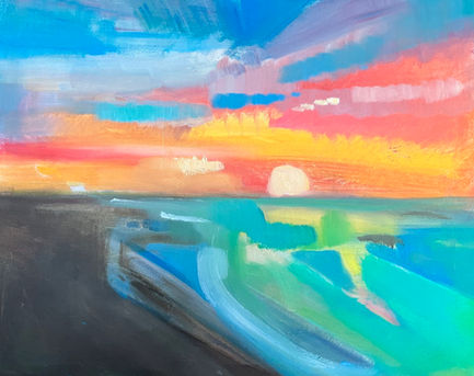 I take daily walks and am continually inspired by the beauty of the mountains in Colorado. I paint both outside surrounded by nature and in my home studio in Erie. I take a lot of photos when I travel, and also use those for inspiration. I can find beauty just about anywhere. I use bold brushstrokes and color to convey the passion that I feel for my subject matter, and my canvases keep getting bigger every year as I try to express bigger and bigger visions.